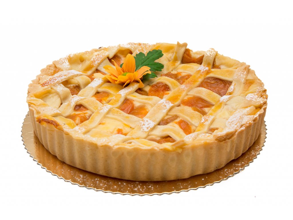 Tradičný koláčik z jemného maslového cesta naplnený vanilkovým krémom a výbornou chuťou marhúľ (v sezóne čerstvé marhule). Koláč a mriežky sú posypané trstinovým cukrom a dozlatista upečené.